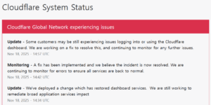 Cathlab RD 클라우드플레어 오류 서버 복구 실시간 상황 오늘 갑작스러운 클라우드플레어 오류로 인해 롤(LoL), 트위터, 챗GPT 등 자주 사용하는 서비스가 먹통이 되어 많이 답답하셨을 겁니다. 이번 접속 장애는 단순한 인터넷 문제가 아닌 전 세계 서버를 담당하는 클라우드플레어의 내부 …