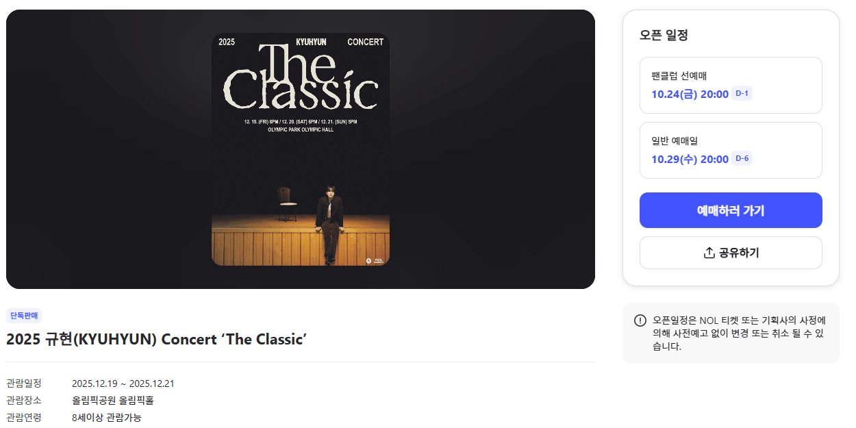 2025년 12월 연말 규현 콘서트 ‘The Classic’ 티켓팅 예매 링크 지금 바로 확인해보세요