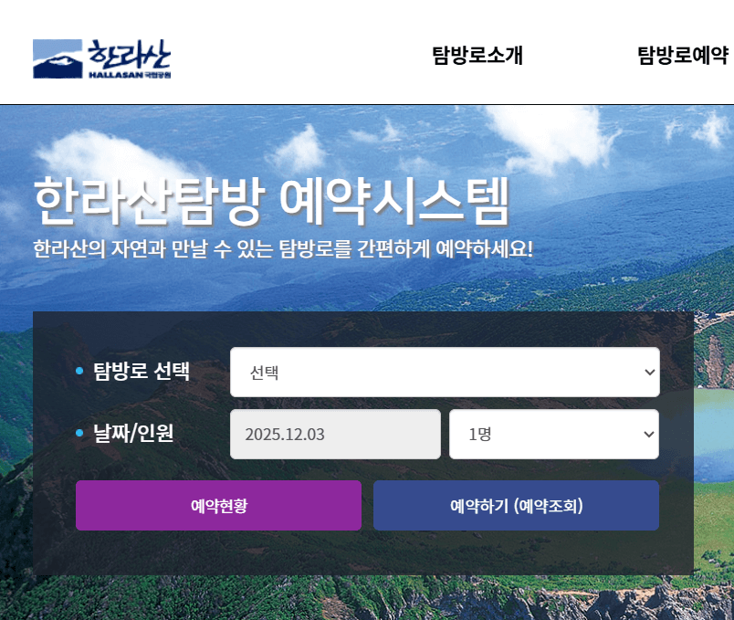 예약 방법: 한라산탐방 예약시스템 홈페이지 (회원가입/로그인 필수)