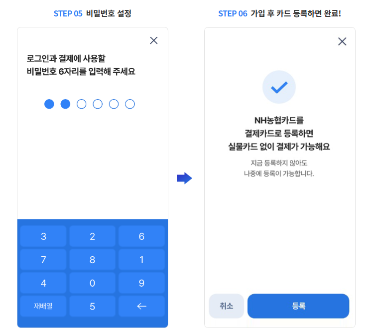 - CVC 번호와 비밀번호를 설정하면 온라인 결제 시 ‘NH Pay’를 선택해 바로 사용할 수 있어요.