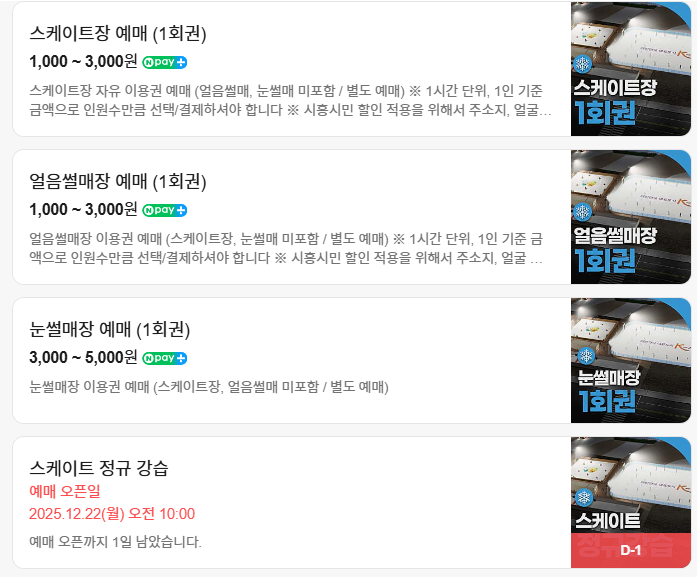 - 당일 스케이트 이용 고객: 3,000원 (1시간)