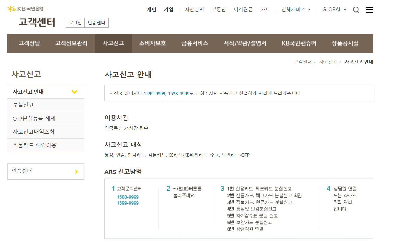 - 상황별 전용 콜센터 전화번호 (분실, 대출, KB Pay)